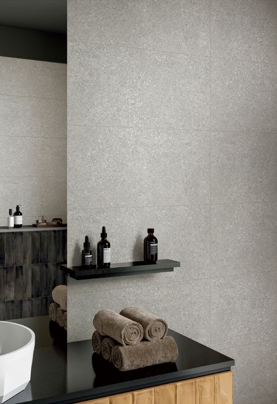 ・タイルの特性上、規格範囲内での反りがあります。反りを目立たなくするために、通し目地または、馬目地の場合はずらし幅を( 長辺が600mm 以上は1/4 程度、600mm 以下は1/3 程度) の設定を推奨致します。