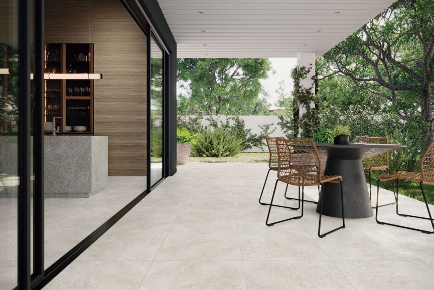 ・タイルの特性上、規格範囲内での反りがあります。反りを目立たなくするために、通し目地または、馬目地の場合はずらし幅を( 長辺が600mm 以上は1/4 程度、600mm 以下は1/3 程度) の設定を推奨致します。